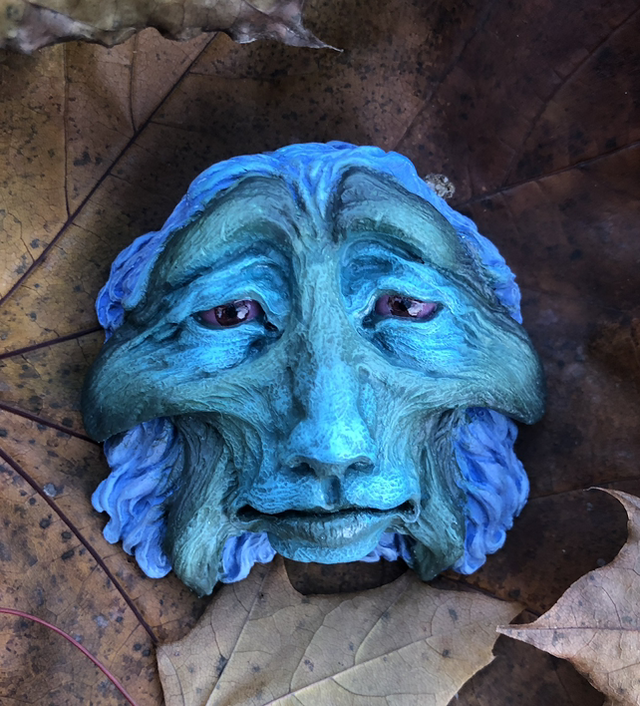 Resin wall hanger casts of my original "Tragedy and Comedy" sculptures, inspired by theatre masks with a fantasy twist. This special edition is inspired by characters and creatures from The Dark Crystal, this one in particular represent UrAmaj the Cook, the Mystic counterpart of SkekAyuk the Gourmand. Each piece is unique, painted with acrylics and and protected by a layer of varnish.