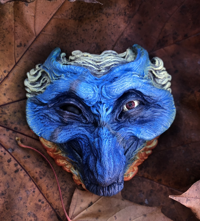 Resin wall hanger casts of my original "Tragedy and Comedy" sculptures, inspired by theatre masks with a fantasy twist. This special edition is inspired by characters and creatures from The Dark Crystal, this one in particular represents SkekNa the Skeksis Slave Master. Each piece is unique, painted with acrylics and and protected by a layer of varnish.